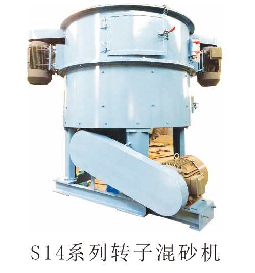 它的主要工作原理是:采用低速轉動的刮板推動物 料在機盆內形成環流運動,高速轉動的轉子葉片既對型砂施以沖擊力,又與刮板配合對型砂施以剪切力,使 砂料之間發生沖擊和激烈的摩擦,從而達到混砂速度快,型砂質量好和能耗低的目的。